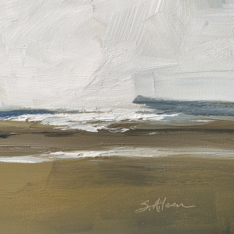 "Shorelight" is an original oil painting capturing the shimmer of light on a coastal horizon. Expressive, semi-abstract brushstrokes evoke the movement of water and the open shoreline, perfect for contemporary, coastal, and modern interiors.